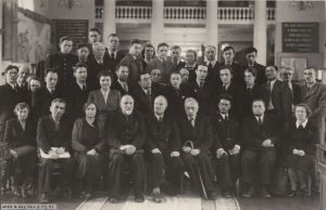 Групповая фотография членов Комитета по метеоритам Академии наук СССР в здании Минералогического музея (Москва). Комитет по метеоритам Российской академии наук Переименования: 1922-1935 Метеоритный отдел Минералогического музея Академии наук СССР 1935-1939 Метеоритная комиссия при Институте геохимии, кристаллографии и минералогии им. М.В. Ломоносова Академии наук СССР (Ломоносовский институт) 1939-1991 Комитет по метеоритам Академии наук СССР (КМЕТ) 1991- Комитет по метеоритам Российской академии наук (КМЕТ) Краткие сведения о фондообразователе: Метеоритная коллекция Академии наук была заложена в середине 18 века, находкой первого метеоритного вещества недалеко от Красноярска: железная глыба весом около 700 кг, впоследствии получила название «палласово железо». Именно коллекция метеоритов явилась основой для организации планомерной научно-исследовательской деятельности по метеоритики - раздела науки, изучающей метеорное вещество во всех его состояниях и проявлениях, включая метеориты и их падения на Землю. Главным идеологом и организатором научного подхода в метеоритных исследованиях в Российской академии наук был академик В.И. Вернадский. В 1921 г. по его инициативе при АН была организована специальная Метеоритная экспедиция, которая собирала сведения о находках метеоритов на территории страны. Начальником экспедиции был - Кулик Л.А. (впоследствии - ученый секретарь КМЕТ); 5 сентября 1921 г. началась первая научная экспедиция по изучению Тунгусского падения 1908 г. В 1922 г. на базе метеоритной коллекции Минералогического музея был создан Метеоритный отдел; в 1935 г. - Метеоритная комиссия при Ломоносовском институте Академии наук АН СССР; в 1939 г. — Комитет по метеоритам АН СССР; с 1991 г. - Комитет по метеоритам РАН (КМЕТ). В настоящее время КМЕТ находится при Институте геохимии и аналитической химии (ГЕОХИ) им. В.И. Вернадского РАН. Лаборатория метеоритики ГЕОХИ РАН наследует научные традиции и тематику научно-исследовательских работ Комитета по метеоритам РАН и лаборатории сравнительной планетологии и метеоритики ГЕОХИ РАН. Лаборатория курирует Национальную коллекцию лунных образцов, Метеоритную коллекцию РАН, Музей внеземного вещества ГЕОХИ РАН и метеоритную экспозицию в Минералогическом Музее им. А.Е. Ферсмана РАН. |