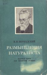 Вернадский В.И. Размышления натуралиста: В 2 кн. / АН СССР. Ин-т истории естествознания и техники. Архив. М.: Наука, 1975. [Кн. 1.]: Пространство и время в неживой и живой природе / Сост.: Бастракова М.С., Неаполитанская В.С., Филиппова Н.В.; Редкол.: Кедров Б.М. и др. 175 с.: 1 л. портр. Имен., предм. указ.: с. 165-173..